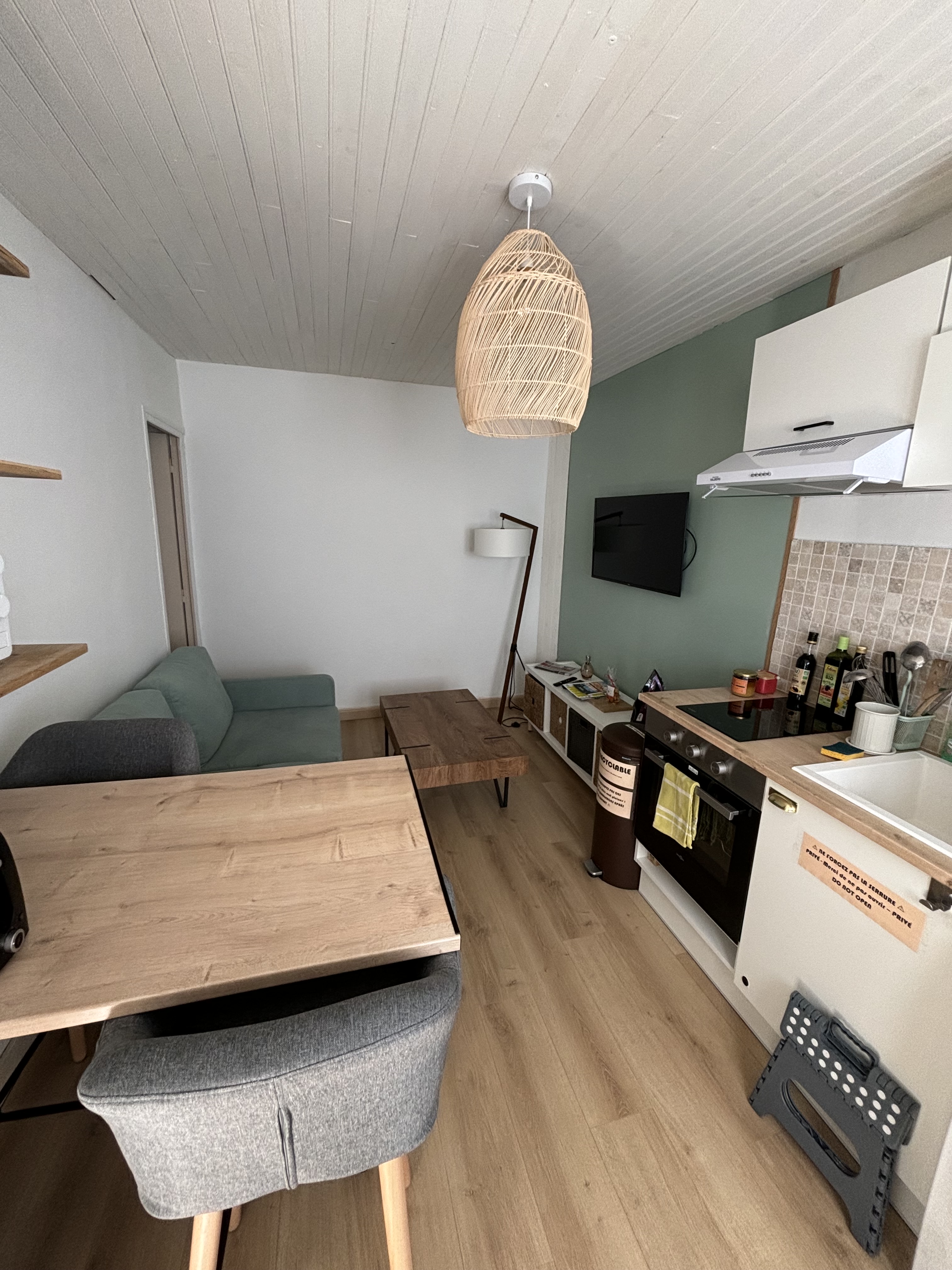 La cuisine ouverte sur le salon dispose d’une machine à laver séchante SAMSUNG, d’une machine à café à grains KRUPS, d’un réfrigérateur avec congélateur, d’un four, d’un micro-onde, d’un grille-pain, d’une bouilloire et de tout pour cuisiner. Petit mais très bien équipé.