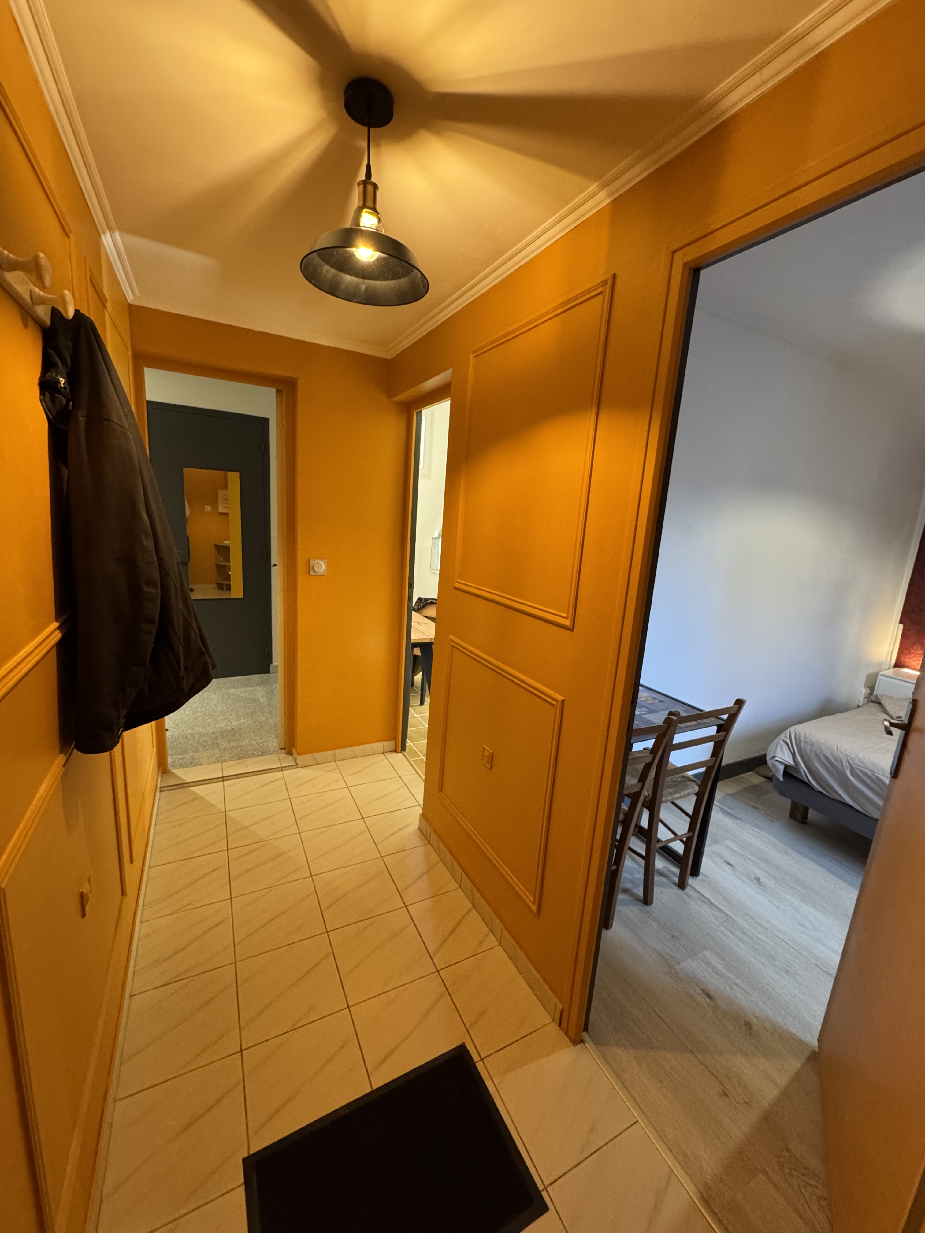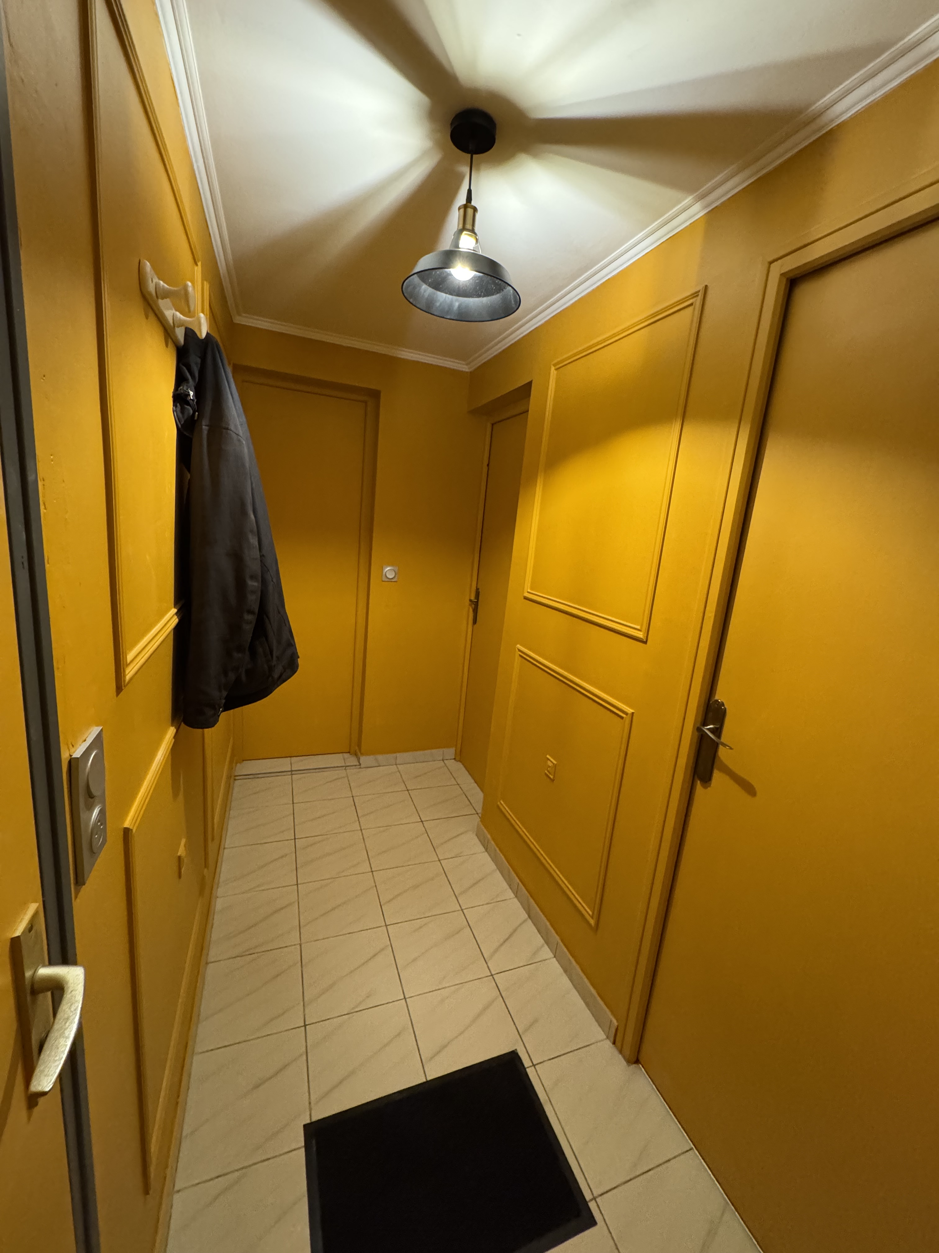 L’entrée est un véritable sas safran pour vous accueillir. La boîte à clef permet d’ouvrir la porte de l’Appart du Coq & le pass Bluetooth ouvre la porte d’entrée de l’immeuble.